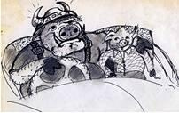 Вчера вечером его, вроде бы, видели в баре У Толстого Борова, который под мостом. Говорят, что он собирался ехать к Розовым свинкам, да видно не успел. Объелся отрубей. Если хрюкеры его найдут, то съезд состоится.