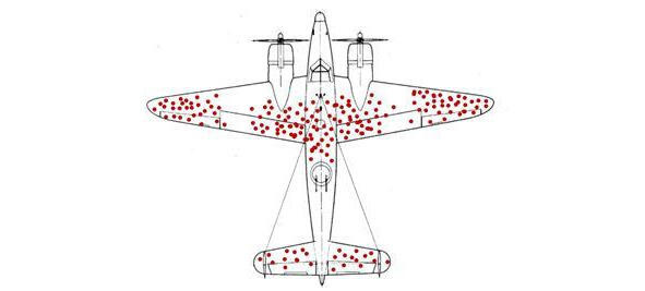 Известна история, которую принято называть «ошибкой выжившего». Во время Второй мировой войны командование американских и британских ВВС поручило математику Абрахаму Вальду выяснить, какие части фюзеляжа самолета нужно защитить дополнительной броней. Вальд изучал самолеты, возвращавшиеся с боевых вылетов, отмечая места попаданий. В результате, он рекомендовал установить дополнительную защиту на те участки (центральную и заднюю части фюзеляжа), где количество пробоин было минимальным. Почему? Да очень просто попадания снарядов в самолет в силу статистики должны были распределяться равномерно по всему корпусу самолета. Но те попадания, после которых самолеты возвращались, и которые Вальд видел, не были смертельны. Защищать нужно от попадания вражеских снарядов в те места, которые не были повреждены на вернувшихся самолетах. Он понял, что самолеты, которые их получили, погибали и не возвращались.