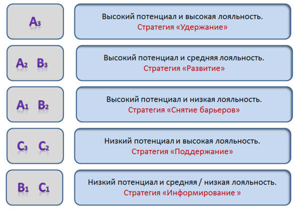 Стратегия «Развитие»: потенциал есть, и лояльность есть, но нет достаточного уровня того и другого. Необходима разработка комплекса мероприятий по убеждению администрации сети приобретать продукты компании чаще, чем она это делает. Для этого имеет смысл работа с УСТМ, ТМА (трейд-маркетинговые активности) по отдельным взаимоинтересным продуктам и т. д.