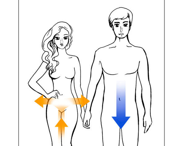основные направления потоков энергии через тела женщины и мужчины