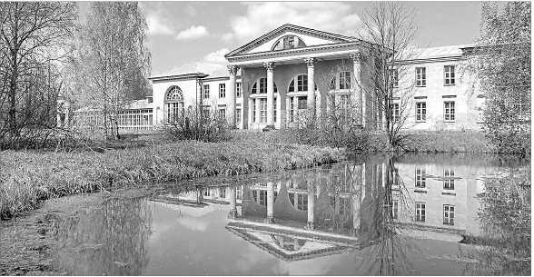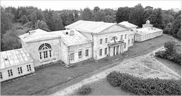 Усадебный дом с пейзажным парком, павильон-пристань, въездные ворота появились на Охте в 17941796 гг. Первоначальных чертежей дома не обнаружено, точное время его создания и автор доподлинно неизвестны. Однако с большой долей уверенности можно говорить, что им является Джакомо Кваренги, о чем подробнее будет рассказано ниже.