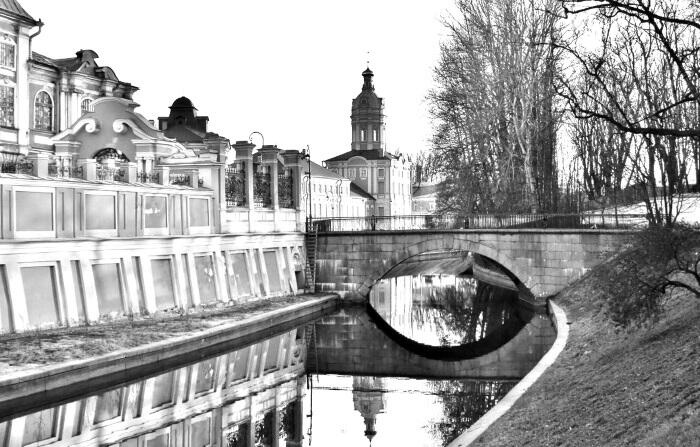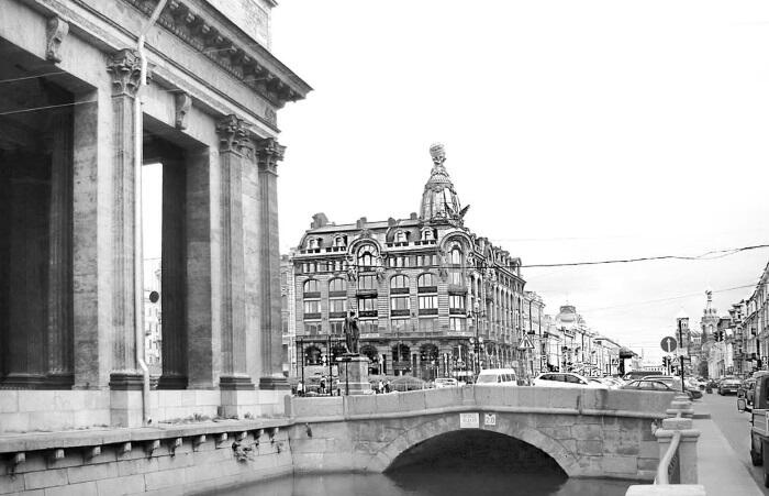 Между Мойкой и Фонтанкой проходила еще одна река, носившая название Глухой, или Кривуши. Она брала начало из болота, находившегося между нынешними Конюшенной площадью и площадью Искусств, и впадала в Фонтанку неподалеку от Калининской деревни. С 1716 г. в створе Большой першпективной дороги через нее перекинули деревянный мост. В 1737 г. мост получил имя Рождественский по расположенной рядом церкви Рождества Богородицы. Со второй половины XVIII в. Рождественскую церковь стали называть Казанской по чудотворному образу Казанской иконы Божией Матери. Такое же наименование закрепилось и за новым каменным мостом, построенным в 1766 г.