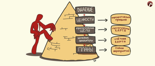 Стратегические цели во взаимосвязи визуализируются на стратегической карте.