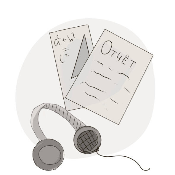 Наступает время обеда, передышка. Она надевает пальто, берет наушники и спешит в магазин что-нибудь купить перекусить. По дороге слушает музыку в наушниках, которая тоже не проходит бесследно и даёт повод к размышлению, в зависимости от того, какая песня звучит. Если про несчастную любовь, то идёт наша взрослая и сочувствует. Если слушает иностранщину, то пытается вообще понять, о чём это. Если какой-то рок, то понятное дело, люди что-то требуют, за что-то борются. А если рэп какой-нибудь дикий, то возмущается: «Как их таких мать-то воспитала, бестолочей? Только и пытаются связать слова в строки, а музыкой это вообще не назовёшь. Одно слово- бездельники!»