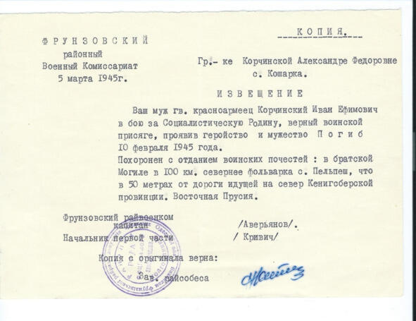 Я помню, как почтальон принес похоронку и крик матери. Это была тяжелая утрата для нашей семьи.