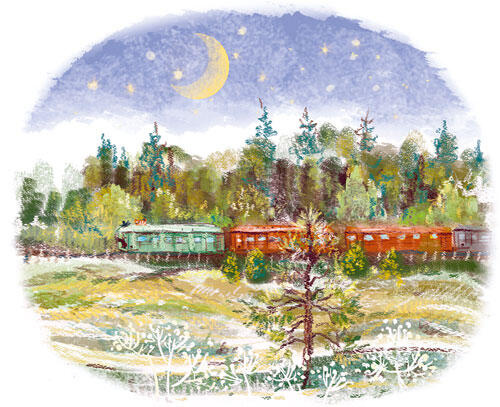 Ворона умудрилась на крышу вагона сесть, а Кот и Пёс на ходу вспрыгнули на заднюю площадку последнего вагона. Конечно, Кот тут же на крышу к Вороне залез, а Пёс так и остался на площадке. Он с изумлением смотрел на убегавшие назад рельсы. Чего только не совершишь в запале погони!