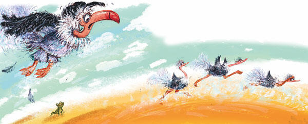 Птичка! Гриф снова резко выдернул у Страуса другое перо и опять украсил им собственный хвост.
