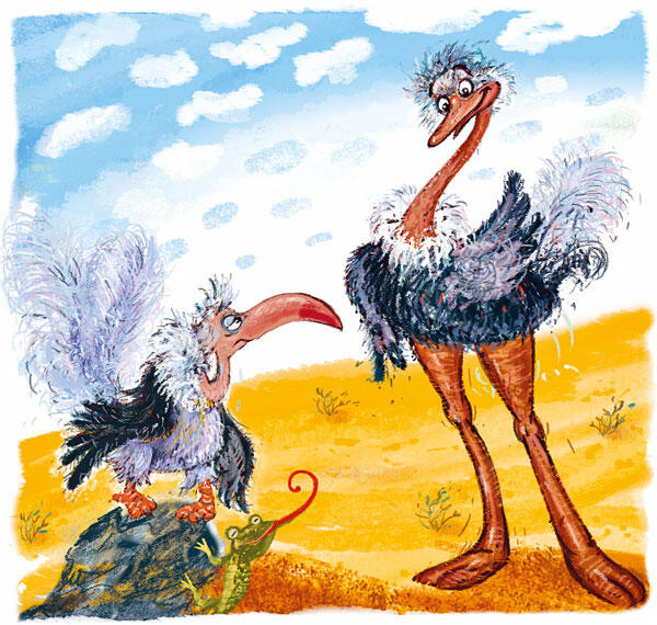 В пустыне, где часто встречаются страусы и лишь изредка грифы, встретились однажды Страус и Гриф.