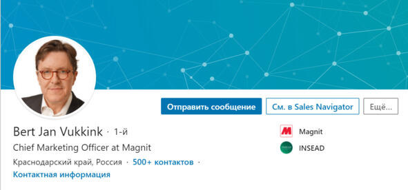 Допустим, вы поняли, что ваше решение может быть интересно маркетологам, и решили найти главного из них. Представим, что вам нужен директор по маркетингу сети «Магнит». Как его искать?