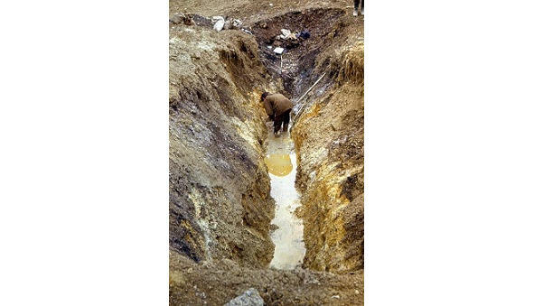 На фото процесс поисков касситерита. Отпалка канав с помощью аммонита 6-ЖВ, зачистка канав и отбор проб и результат в виде бульника с 30% касситерита.
