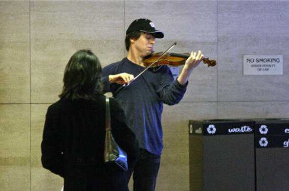 12 января 2007 года в подземный переход станции LEnfant Plaza в Вашингтоне вышел человек со скрипкой и начал играть. Он играл на скрипке 45 минут. И за это время заработал 32 доллара 17 центов и жалобу от чистильщицы обуви, которая посчитала его игру слишком громкой. Нормальная история для уличного музыканта. Но есть нюанс. Этим музыкантом был признанный лучшим из ныне живущих в США скрипачей, 39-летний Джошуа Белл (Joshua Bell). Про него говорят: «Играет как Бог». Билеты на его концерт стоят сотни долларов. Играл он на драгоценной скрипке Страдивари стоимостью 3,5 млн. долларов сложнейшие произведения Крейслера, Шуберта, Массне и Баха.