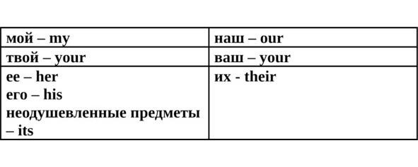 2) притяжательными местоимениями мой, твой, его, ее, ваш, наш, их;