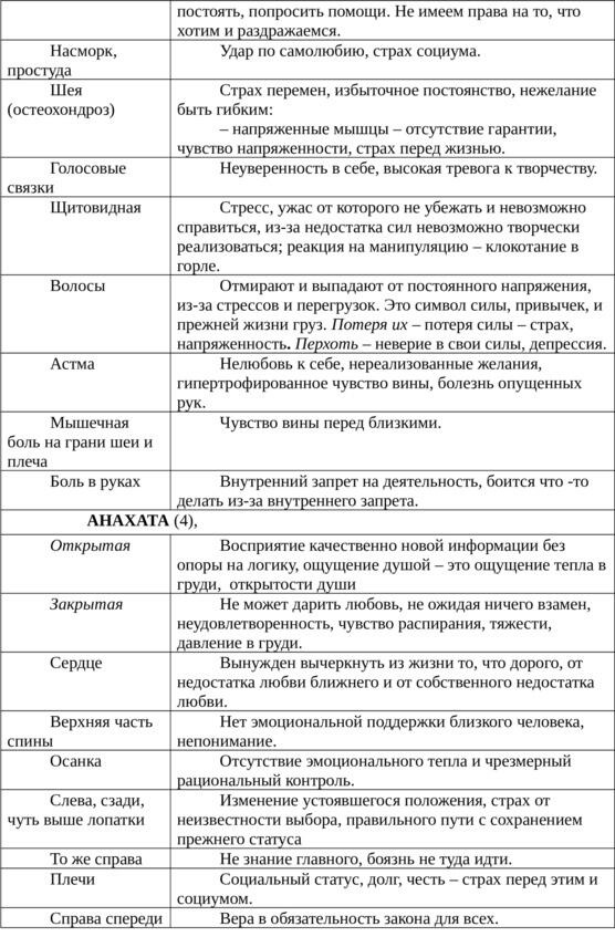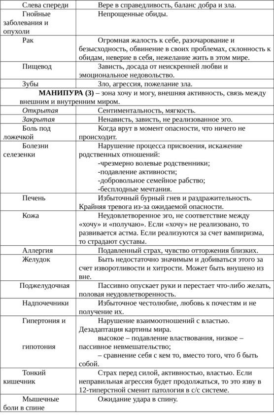 Предлагаю таблицу, где показаны органы на физическом плане. Они расположены под тем энергоцентром, который управляет и подпитывает эти органы. Если чакра (центр) не гармонична, значит, страдает какой-то орган, а может и несколько. Или, вы можете просмотреть в обратном порядке. Зная, что у вас болит, например, глаза, определить, какое отношение к себе и миру спровоцировало эту болезнь и понять, что центр работает неправильно.