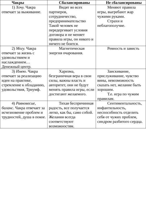Ввиду того, что человек (даже если он стремится к духовному) остается жить на земле, ему не чужды желания и стремления получать удовольствия материальные. Приведу еще одну схему, предложенную Андреем Десни. Эта схема показывает, за что еще отвечают наши нижние центры. Если человек хочет быть успешным в материальной сфере, то эти центры у него должны быть гармоничны. У человека с хорошо работающими верхними центрами и плохо работающими нижними с умом и духовностью порядок, а вот в жизни не везет. Отсутствует связь с материальным миром. Некоторые люди думают, что достаточно развить только духовную сферу и все будет в порядке. Отнюдь. Если нас поместили в материальную сферу, значит, это кому-нибудь нужно. Сферы должны быть в балансе, а значит, активны обе половины и духовная и материальная.