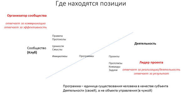 В пространстве деятельности «лидер деятельности» отвечает за результат.