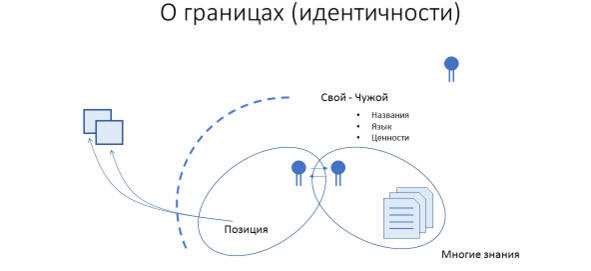 Если в общем виде про это думать, то выглядит это так: есть граница, которую держит Организатор сообщества по принципу «свой-чужой»: в ценном знании (признанные внутри темы, ценности, фокусы внимания), в месте обращения этого знания (идентичность, клубность, особенность) и в равенстве права говорить (горизонтальность общения).