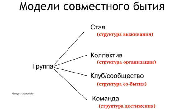 И команда эта группа, куда мы попадаем, решив чего-то конкретного достичь вместе. В отличие от коллектива или сообщества, команда это всегда четкая структура, направленная на достижение. Она достигает свои задачи и после этого или превращается во что-то другое, либо ставит себе новую цель.