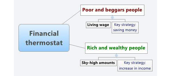 For poor and beggars people, the financial thermostat is limited to the cost of living. Therefore, they avoid risk by any means and save on everything. Rich and wealthy people, on the other hand, set their financial thermostat for exorbitant amounts that frighten ordinary people. The amounts that they imagine in their imaginations are hundreds and thousands of times higher than the amounts that poor and beggars people agree to! Therefore, they are not afraid to take risks and instead of saving, they constantly increase their income.
