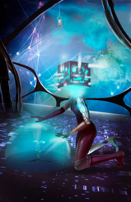 Акула временно парализована, и он вспомнил о рыбке, запрыгнувшей к нему в лодку. Рыбка уже не шевелилась. Он бросил её в воду, но она неподвижно зависла на боку, жабры не сделали ни одного вдоха. Тогда при помощи модулятора Брэд сгенерировал небольшой аквариум с аэратором и скомандовал: