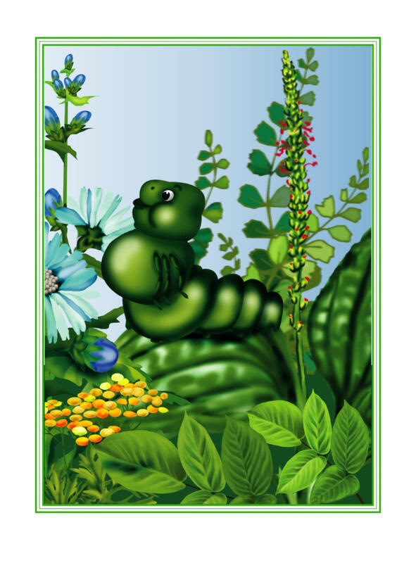 Ах, какая же я красавица! радовалась гусеница. Какая у меня гладкая зеленая кожа, какие большие черные глаза, какие крохотные изящные ножки!