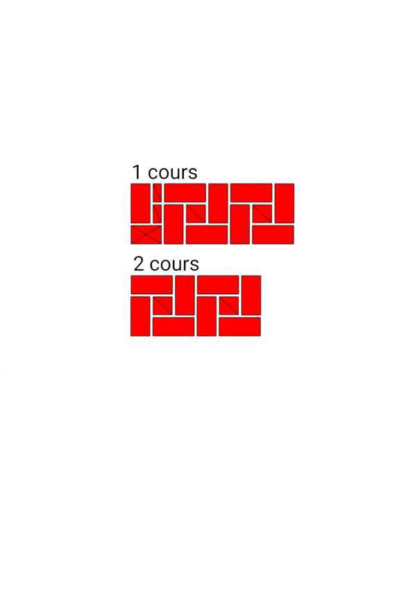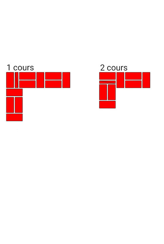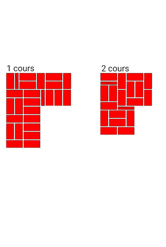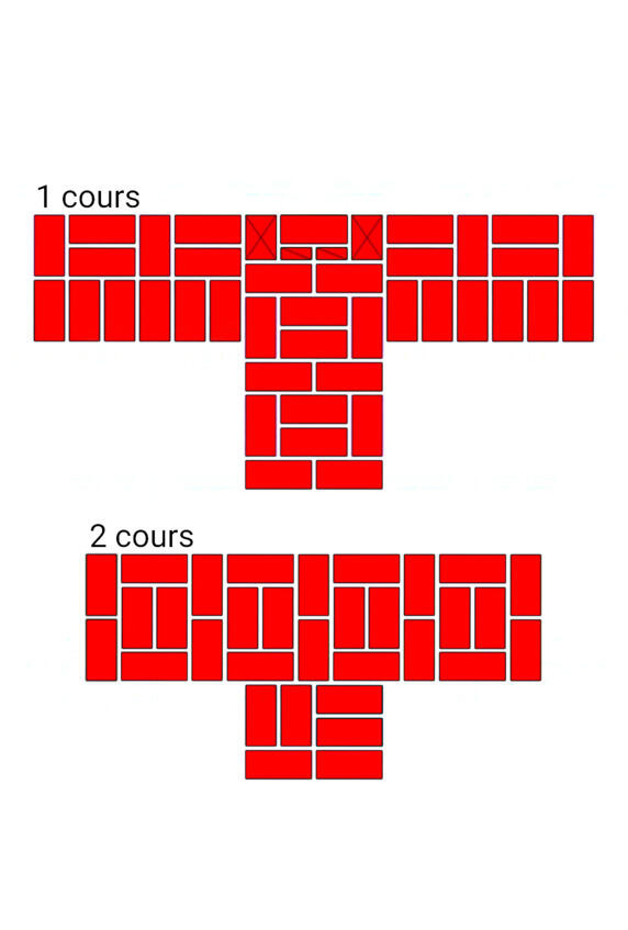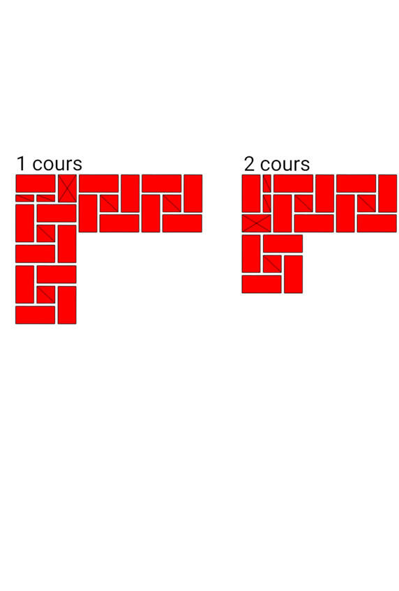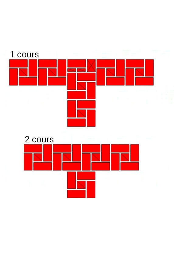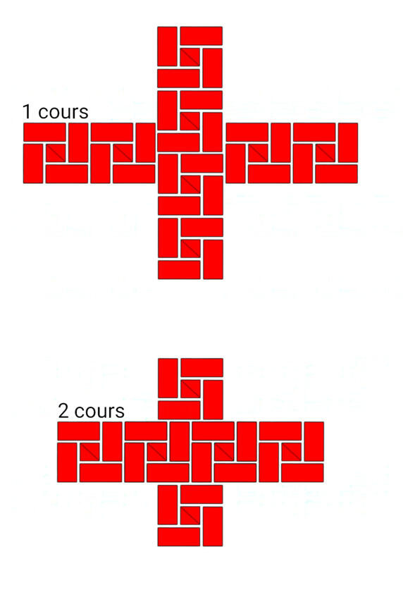 Fig.13. Lordre de la pose de la brique dans les murs adjacents. L'épaisseur des murs est de 2 et 2 briques.