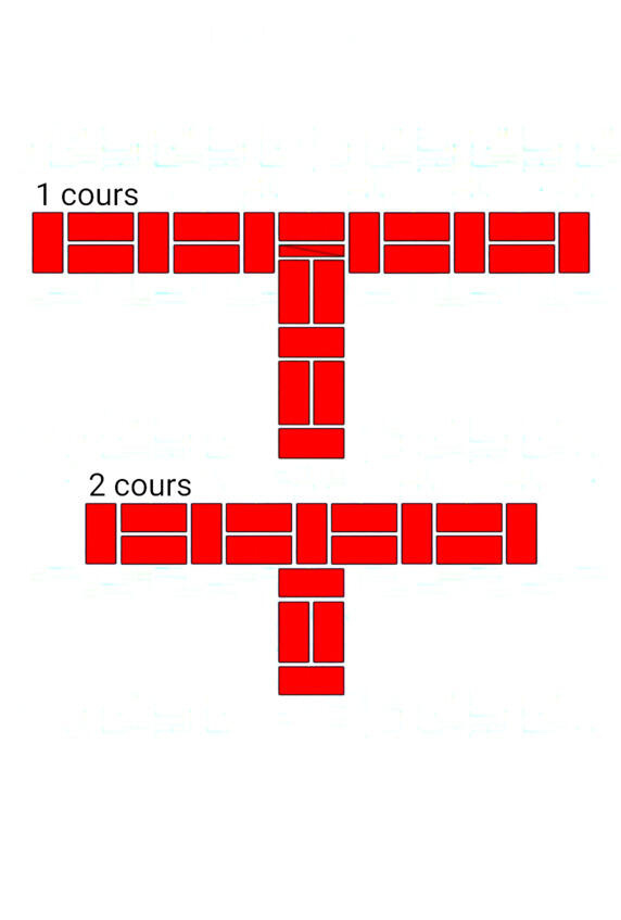 Fig.11. Lordre de la pose de la brique dans les murs adjacents. L'épaisseur des murs est de 1 et 1 briques.