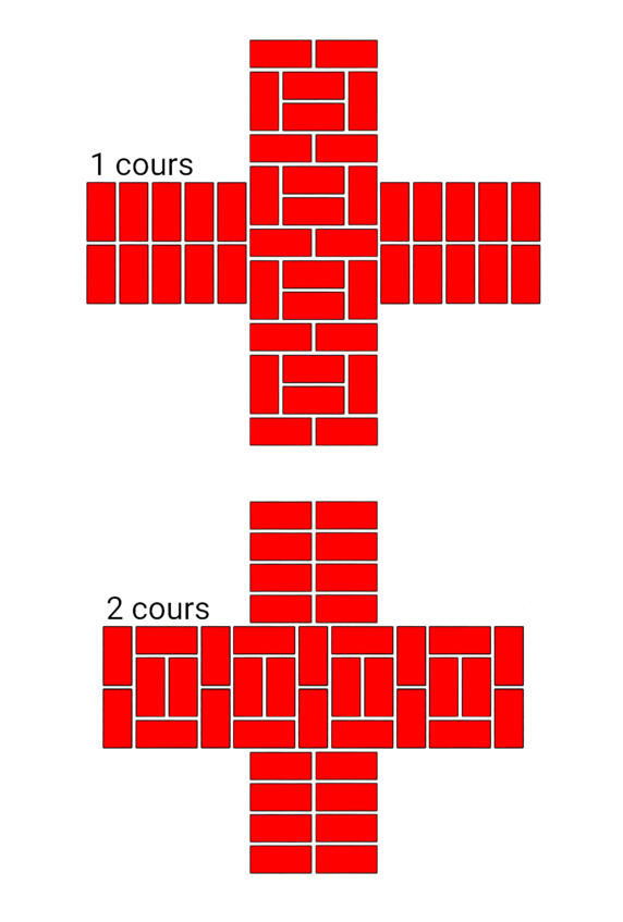 Fig.24. Lordre des briques à lintersection des murs. L'épaisseur des murs est de 2 et 2 briques.