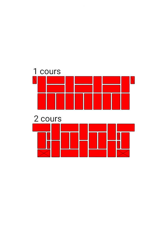 Fig.6. Lordre de pose des briques dans une section de murs à restriction verticale. Epaisseur de paroi 1 brique.