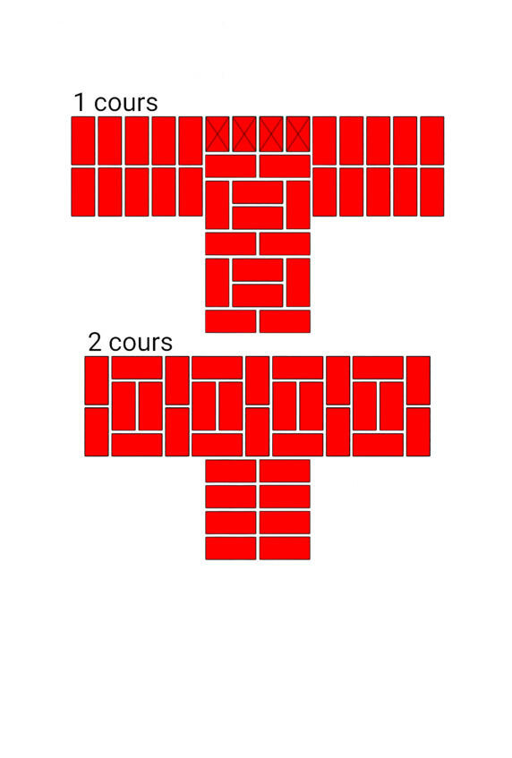 Fig.13. Lordre de la pose de la brique dans les murs adjacents. L'épaisseur des murs est de 2 et 2 briques.