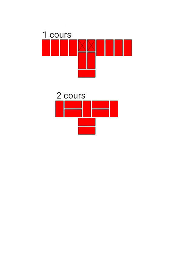 Fig.6. Lordre de pose des briques dans une section de murs à restriction verticale. Epaisseur de paroi 1 brique.