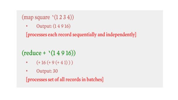Термины map и reduce, которые составляют термин MapReduce, заимствованы из функциональных языков, таких как Lisp.