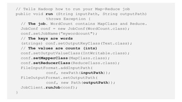 Затем запускает работу, определяя количество задач map и reduce, и затем ожидает результата.