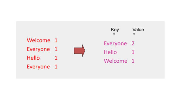 Таким образом, reduce будет проходить через все значения и суммировать их и вырабатывать пару «ключ-значение», где ключ совпадает с ключом ввода, а значение фактически сумма входных значений.