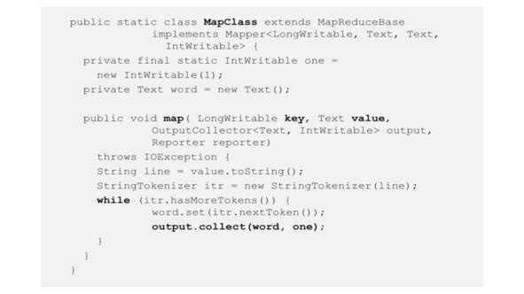 Здесь у нас есть ReduceClass, который имеет функцию reduce, получающую на вход ключ и значения, потому что у вас могут быть много значений, связанных с данным ключом.