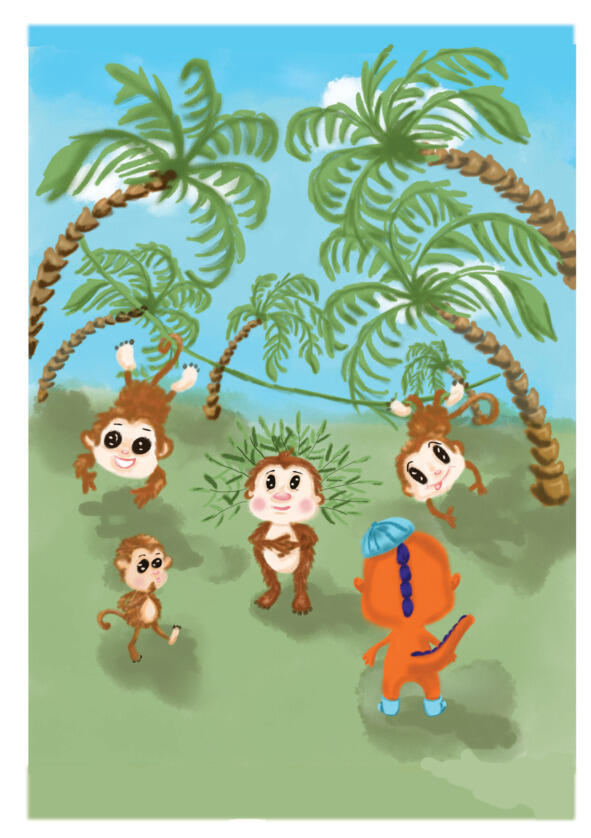 И очутился динозаврик на незнакомой полянке. Со всех сторон к нему подбежали странные существа, покрытые шерстью. У них были длинные хвостики, милые и любопытные мордочки, круглые ушки. А еще они прыгали по веткам деревьев, цепляясь за них своими хвостами. Из толпы зверей вперед вышел один и сказал: