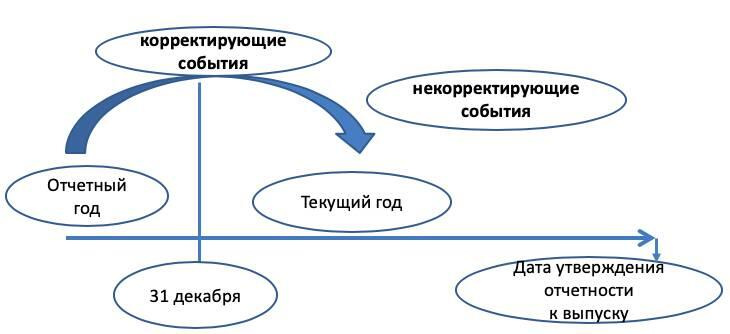 Существенные события, происходящие после конца отчетного периода, но до даты утверждения отчетности к выпуску, можно разделить на два вида: корректирующие и некорректирующие события.