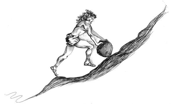 My ancestors went back to the ancient Greeks, who left mankind an incredibly rich gallery of symbolic meaning and intimate knowledge of mythological images. They inherited knowledge from the depths of centuries and created a fascinating and confusing world of heroes and gods. One of them was Sisyphus, the founder and king of Corinth, who tried to cheat death, for which he was condemned to the severe punishment by the gods always lifting a heavy stone up the mountain. As soon as he reached the top, the stone would fall under its weight, and poor Sisyphus would come back for it and roll it up the mountain again and again. It became a symbol of painful but useless meaningless and fruitless labour and in the twentieth century French existentialists was raised to the banner of the absurdity of human existence.