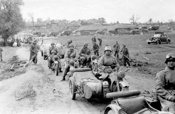 Есть, ответил Иван, приложил бинокль и продолжил доклад, мотоциклов семь. В каждом по два человека. Бронетранспортеров два. Грузовиков пять. Судя по тому, что из-под тентов на каждом автомобиле выглядывают наблюдатели, в кузовах солдаты. Отчётливо наблюдаю немецкие кресты на бортах и тентах.