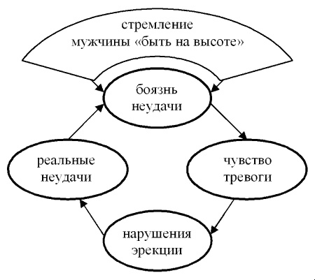 ПОРОЧНЫЙ КРУГ ПЕРЕЖИВАНИЙ, ВЕДУЩИХ К РАЗВИТИЮ «ИМПОТЕНЦИИ»Впрочем, не все так просто. Да, может случиться разовая «осечка», но если у мужчины нет подсознательного страха перед импотенцией, то, скорее всего, никаких последствий подобный «конфуз» иметь не будет. Если же подобный, пусть и подсознательный, страх имеет место быть, то риск превратить эту «осечку» в трагедию, а трагедию в импотенцию многократно увеличивается. Откуда же берется этот страх в подсознании мужчины? Чаще всего он связан с порой «горячей» юности.