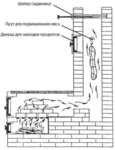 Перед сооружением коптильни сделайте чертеж. В коптильном отсеке предусмотрите съемный поддон для стекающего с продуктов жира.