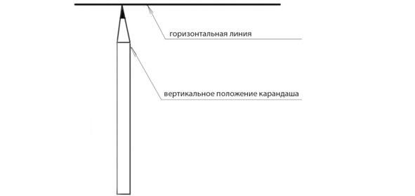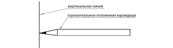 Чтобы нарисовать вертикальную линию, карандаш надо держать строго горизонтально так, чтобы грифель скользил по бумаге.