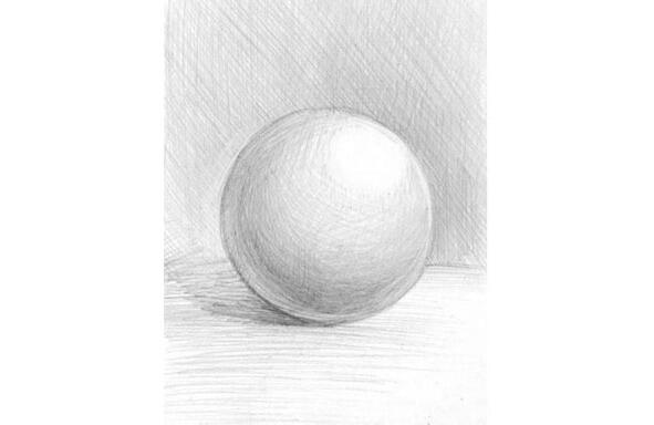 Задание 3: выполните рисунок шара, расположенного ниже линии горизонта при верхнем боковом освещении.