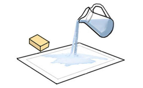 Положите лист на стол. Легким движением смочите бумагу губкой (можно рукой) с одной или двух сторон, дайте бумаге впитать воду, излишки воды удалите.