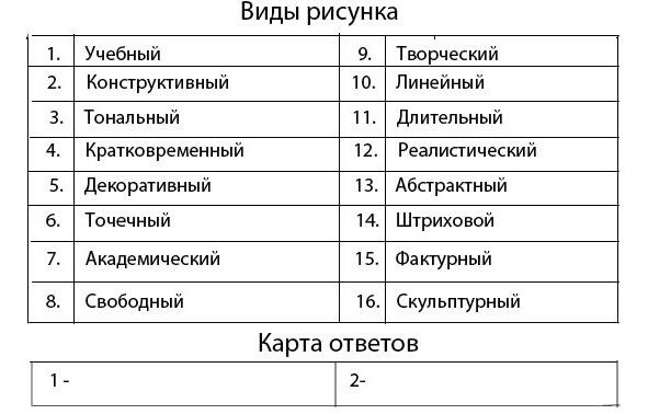 Задание: внимательно рассмотрите рисунок, определите какие виды рисунков он в себе содержит, обозначьте их галочками.