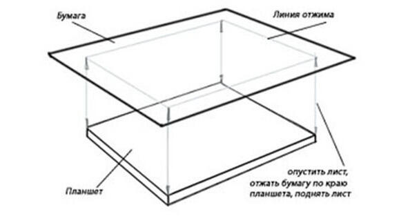 Слегка прижмите бумагу по рёбрам планшета, надрежьте углы.