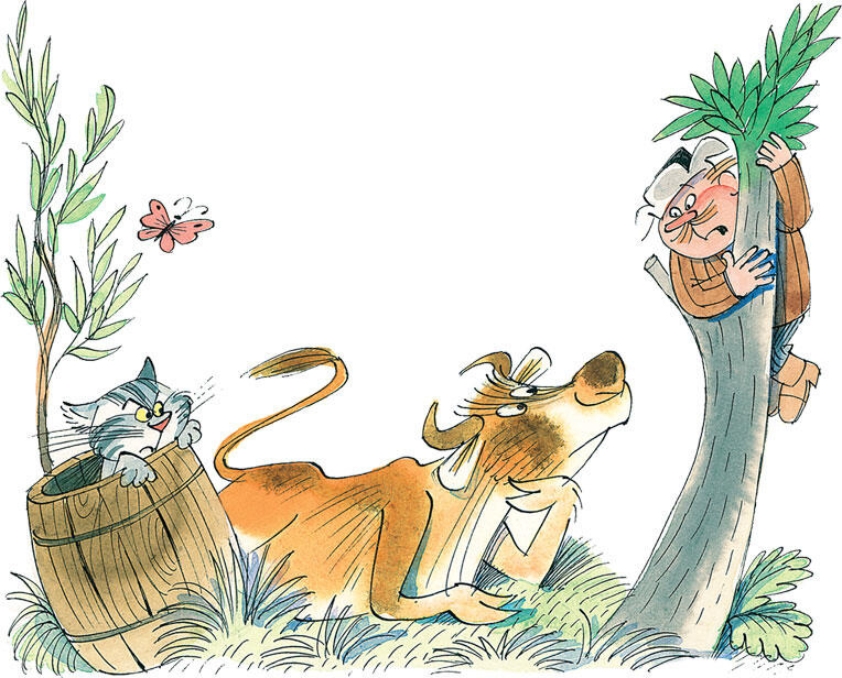 Дядя Фёдор сел в автобус и поехал. Ехать было хорошо. Автобусы в это время за город совсем пустые идут. И никто им не мешал разговаривать. Дядя Фёдор спрашивал, а кот из сумки отвечал.