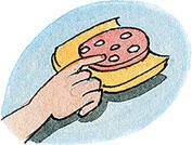 Неправильно ты, дядя Фёдор, бутерброд ешь. Ты его колбасой кверху держишь, а его надо колбасой на язык класть. Тогда вкуснее получится.