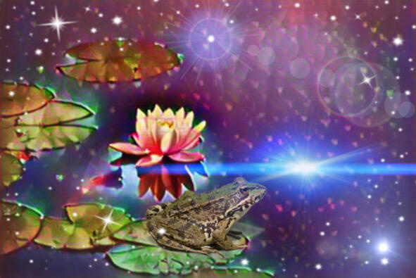Лягушонок не задумываясь бросился на помощь Звездочке. Он нырнул на самое дно, взял Звездочку в лапки и бережно вынес на берег. Звездочка опять засияла голубым огнем и осветила весь пруд. Лори зажал Звездочку в ладошках, скрывая ее свет, и поторопился отбежать подальше от пруда, чтобы не разбудить и не разгневать своих сородичей.