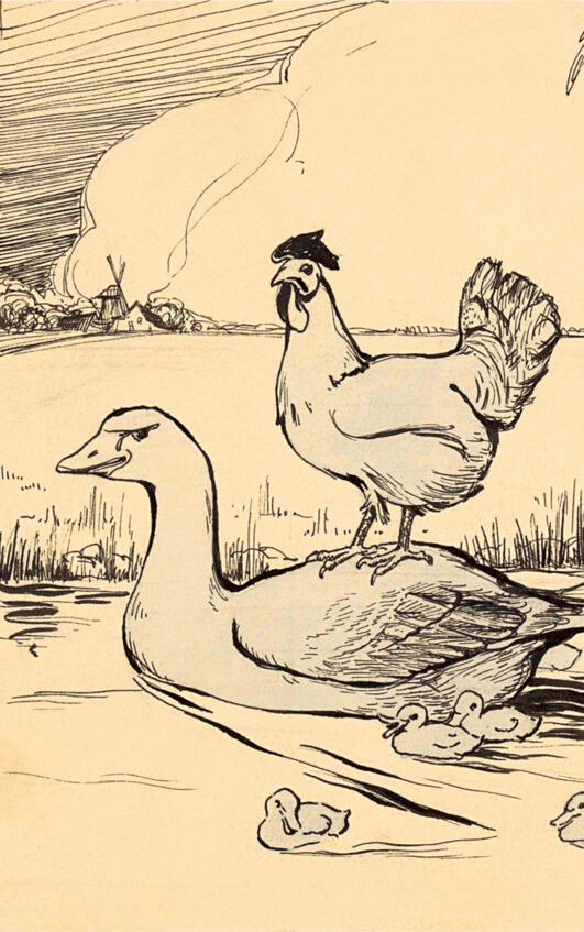 Ты только посмотри, Моня, это же про мир нашего сада! воскликнула Верона, указывая пальчиком на рисунки. Это наши курицы: Фифа, Цаца и Джулиана, а с ними петух Васька. Смотри, как он похож!