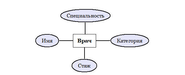 Итак, мы выделили сущность «Врач» с атрибутами «Имя», «Специальность», «Категория» и «Стаж». А Иван Иванович и Анастасия Павловна являются экземплярами сущности «Врач», для которых атрибуты принимают уже конкретные значения.
